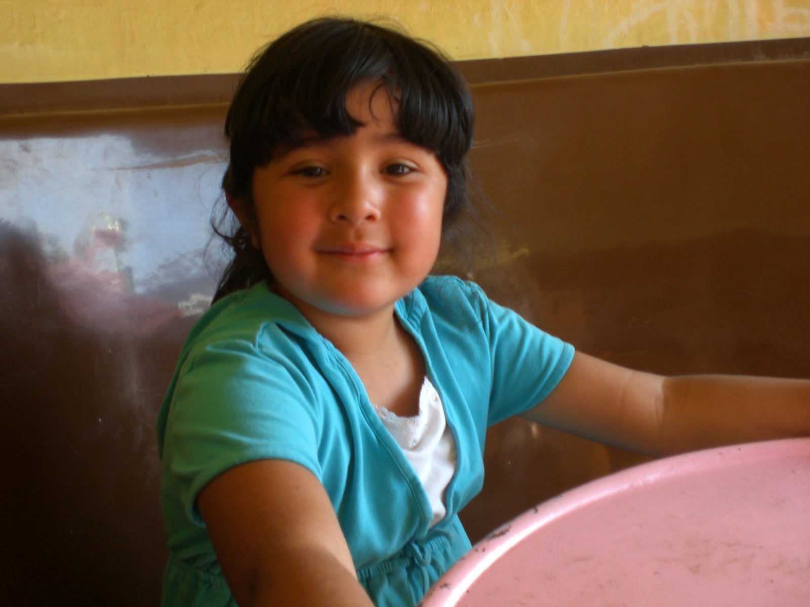 Reganne riding the strawberries.